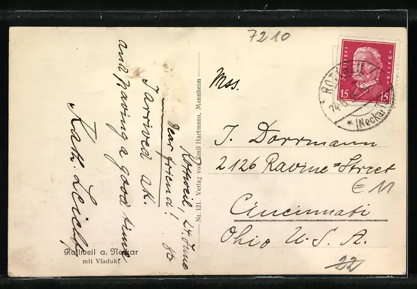 AK Rottweil a. Neckar, Ortspartie am Viadukt