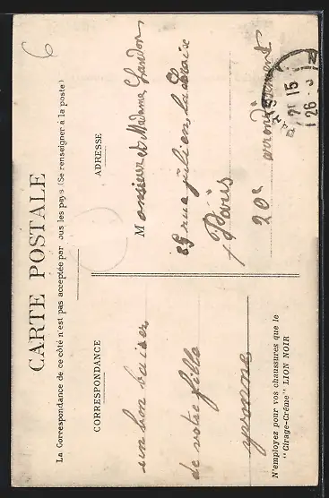 Personenbezogene Daten auf der Rückseite der Karte wurden durch blauen Textmarker unkenntlich gemacht. Die blauen Stellen sind auf die Vorderseite durchgeweicht und wirken sich negativ auf das Postkartenfoto aus