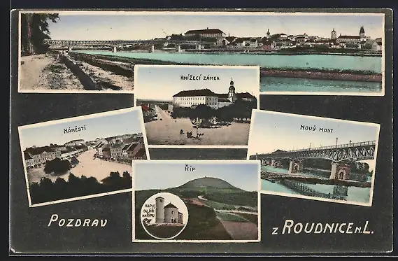 AK Roudnice, Berg Rip, Brücke, Stadtplatz