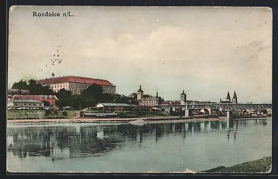 AK Roudnice n. L., Ortsansicht mit Brücke