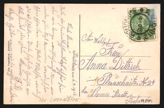 alte Ansichtskarte, gelaufen 1916, vorder- u. rückseitig Klebe- und Papierreste, guter Zustand