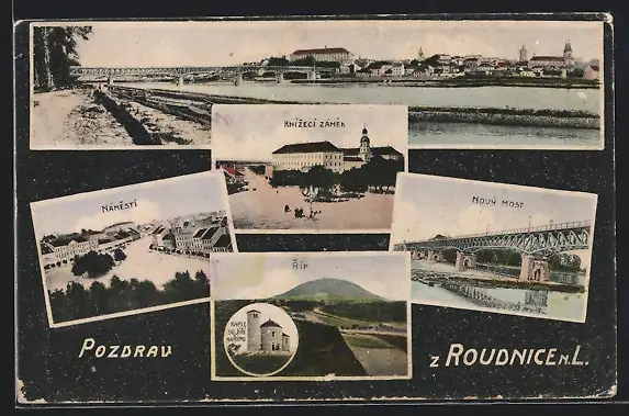 AK Roudnice n.L., Namesti, Celkovy Pohled, Novy Most & Knizeci Zamek