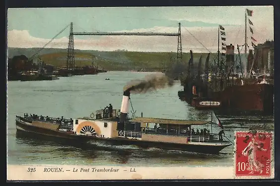 AK Rouen, Le Pont Transbordeur, Dampfer
