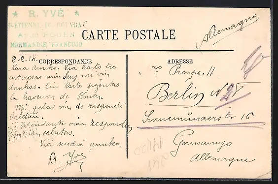 gelaufen 1914, Eckknick li. unten, guter Zustand