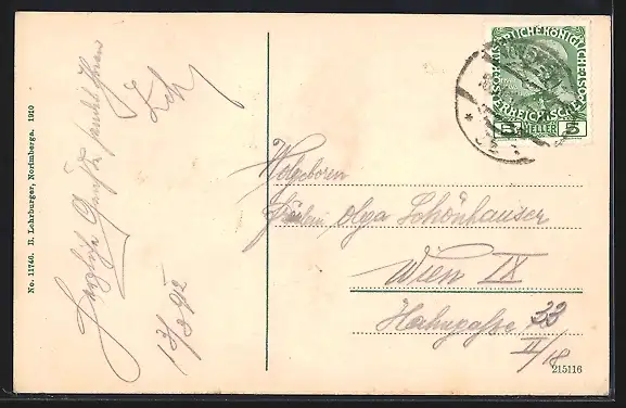 Personenbezogene Daten auf der Rückseite der Karte wurden durch blauen Textmarker unkenntlich gemacht. Die blauen Stellen sind auf die Vorderseite durchgeweicht und wirken sich negativ auf das Postkartenfoto aus