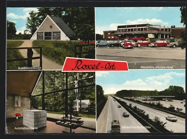 AK Roxel /Westf., Raststätte Münsterland, mit Autobahnkapelle, Raststätte Hansalinie mit Autobahn