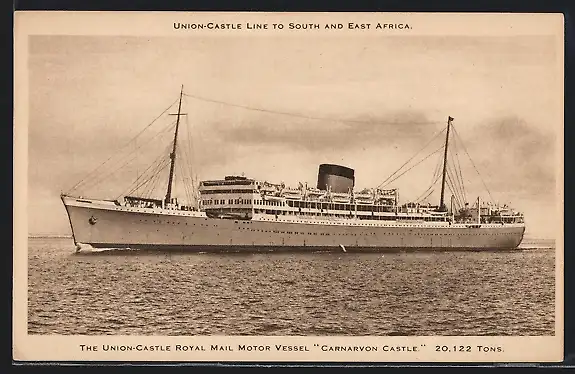 AK Royal Mail Motor Vessel Carnarvon Castle, Union Castle Line to South and East Africa