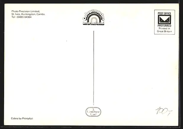 Personenbezogene Daten auf der Rückseite der Karte wurden durch blauen Textmarker unkenntlich gemacht. Die blauen Stellen sind auf die Vorderseite durchgeweicht und wirken sich negativ auf das Postkartenfoto aus