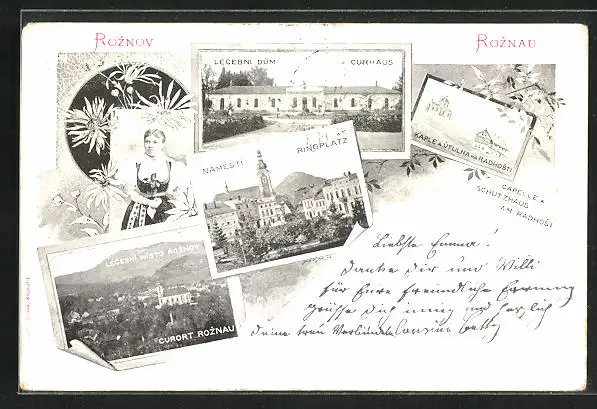 AK Roznov p. R., Lecební dum, Kaple a utulna na Radhosti, Námestí