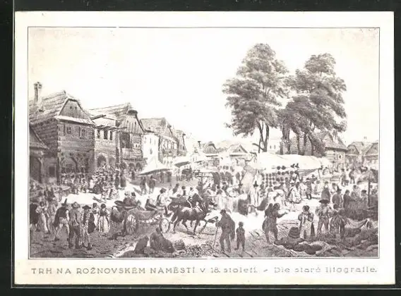 AK Roznov p. R., Marktplatz mit vielen Besuchern