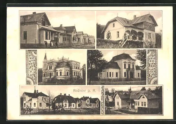 AK Roznov p. R., Verschiedene Gebäude im Ort