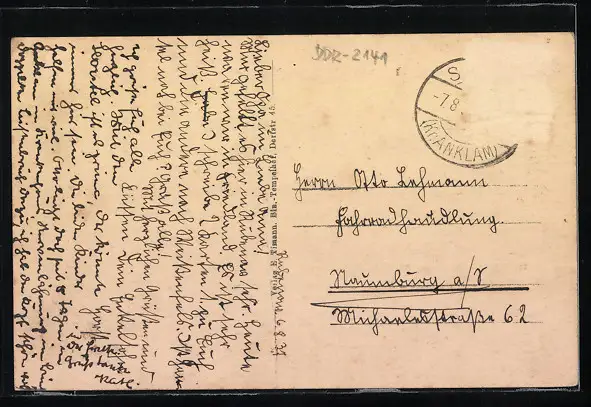 alte Ansichtskarte, gelaufen 1937, Briefmarke entfernt, rückseitig Oberflächenschaden, Eckknick re. unten, guter Zustand