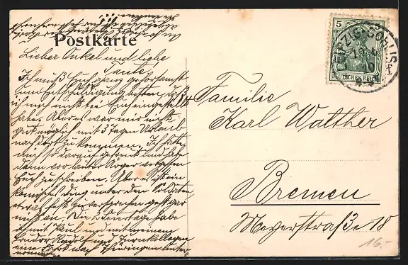 alte Ansichtskarte, gelaufen 1910, guter Zustand