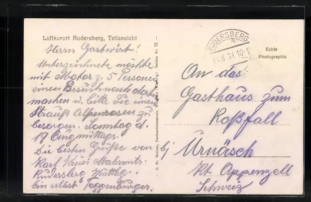 alte Ansichtskarte, gelaufen 1934, Briefmarke entfernt, guter Zustand