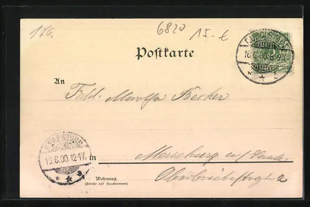 alte Ansichtskarte, gelaufen 1900, guter Zustand