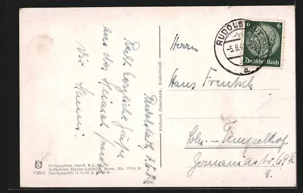 AK Rudolstadt i. Thür., Totalansicht vom Flugzeug aus
