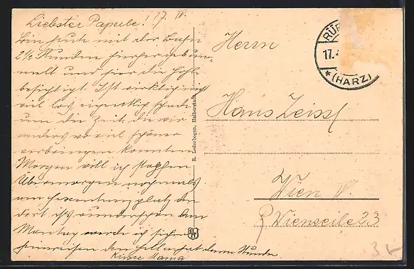 alte Ansichtskarte, gelaufen, Briefmarke entfernt, guter Zustand