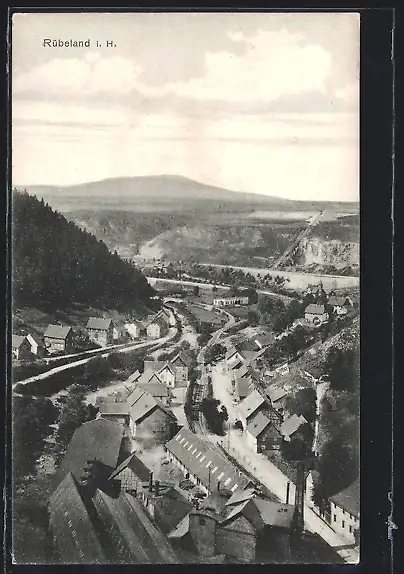 AK Rübeland i. H., Ortsansicht mit Hof aus der Vogelschau