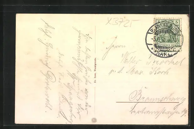alte Ansichtskarte, gelaufen 1911, übermalter Eckschaden links oben, guter Zustand