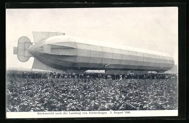 AK Rückansicht nach der Landung von Echterdingen, 5. August 1908, Zeppelin, Luftschiff