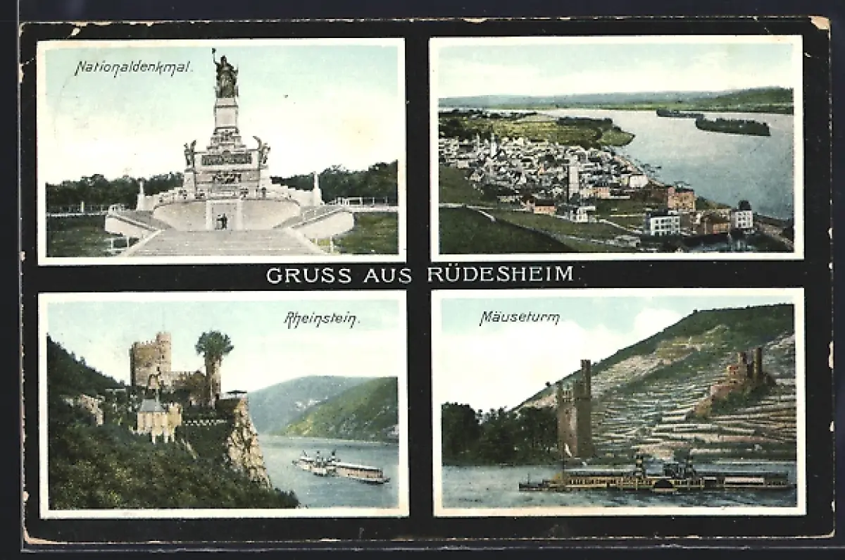 AK Rüdesheim / Rhein, Nationaldenkmal, Rheinstein, Mäuseturm