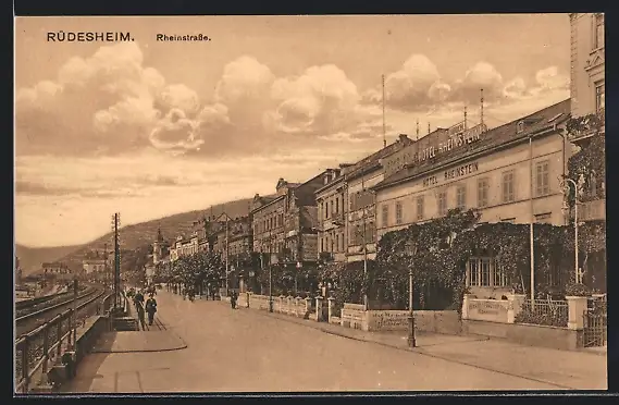 AK Rüdesheim / Rhein, Rheinstrasse mit Hotel Rheinstein