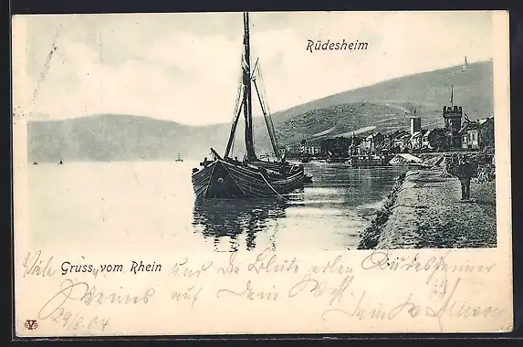 AK Rüdesheim /Rhein, Teilansicht mit Schiff