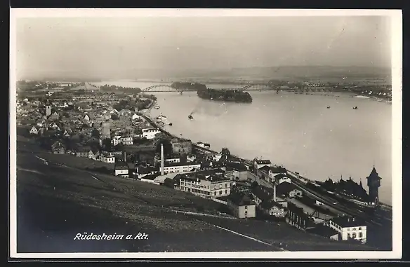 AK Rüdesheim a. Rh., Teilansicht mit Brücke