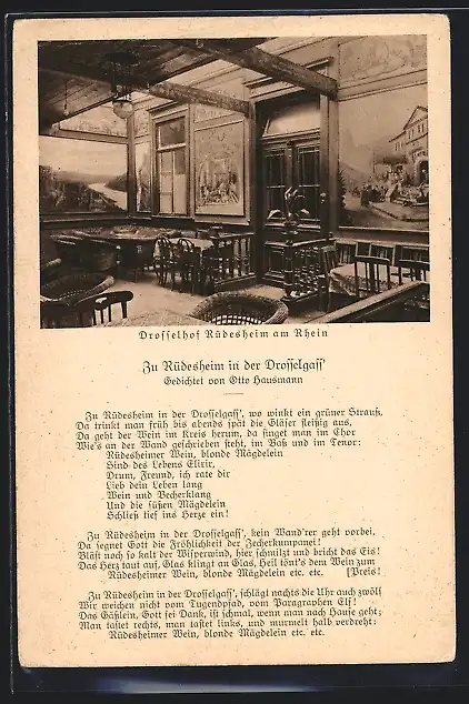 AK Rüdesheim a. Rhein, Hotel-Restaurant Drosselhof, Innenansicht
