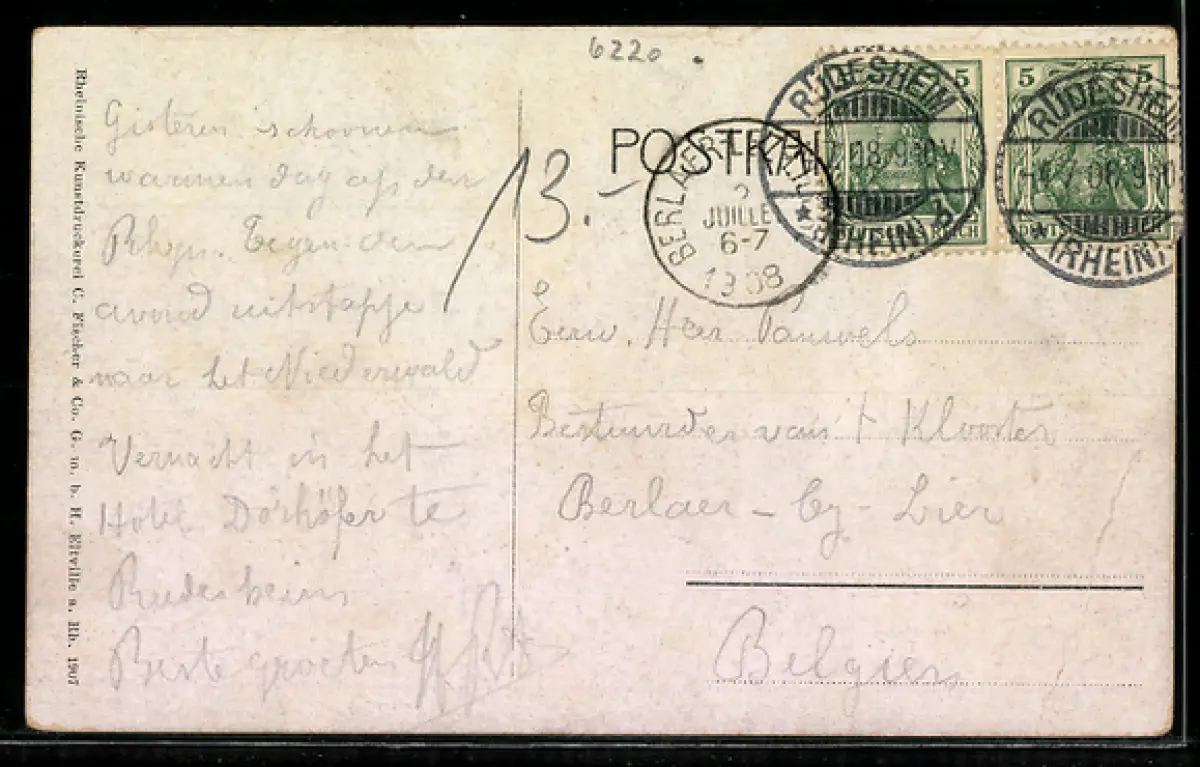 gelaufen 1908, Bugspur li. unten, guter Zustand