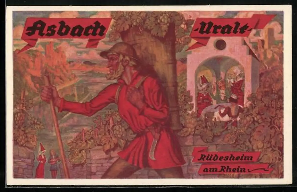 AK Rüdesheim am Rhein, Reklame für Asbach-Uralt, Winzer