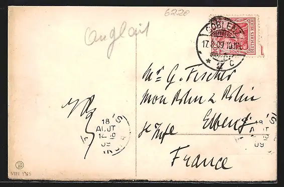 alte Ansichtskarte, gelaufen 1909, Untere Kante bestoßen, guter Zustand