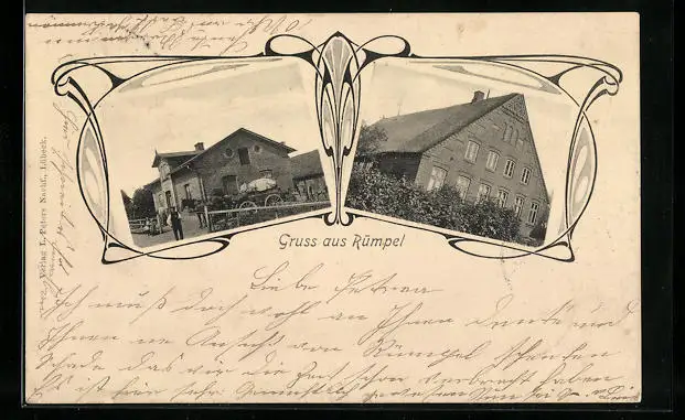 AK Rümpel, Blick auf ein Gehöft und ein Haus