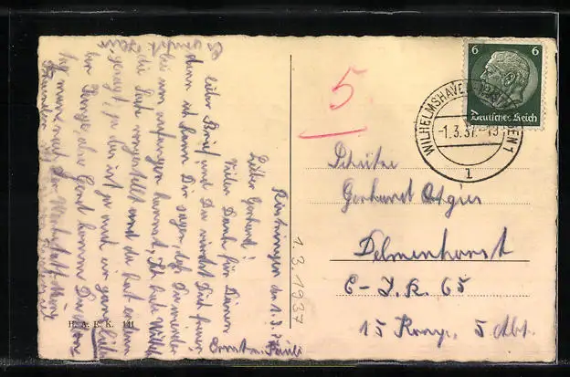 alte Ansichtskarte, gelaufen 1937, Stempelspur, guter Zustand