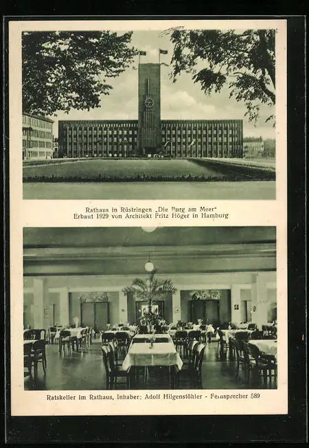 AK Rüstringen, Rathaus mit n, Ratskeller im Rathaus, Inh.: Adolf Hilgenstöhler