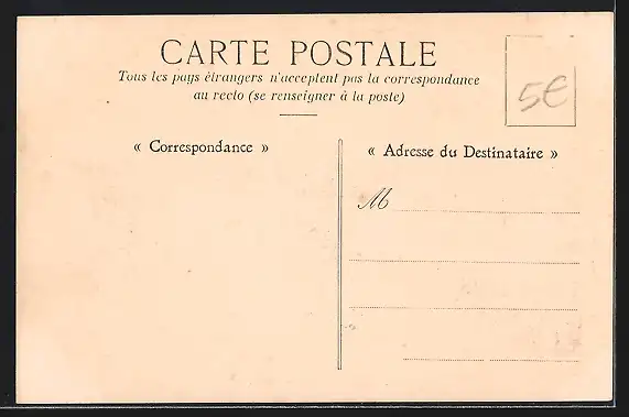 Personenbezogene Daten auf der Rückseite der Karte wurden durch blauen Textmarker unkenntlich gemacht. Die blauen Stellen sind auf die Vorderseite durchgeweicht und wirken sich negativ auf das Postkartenfoto aus