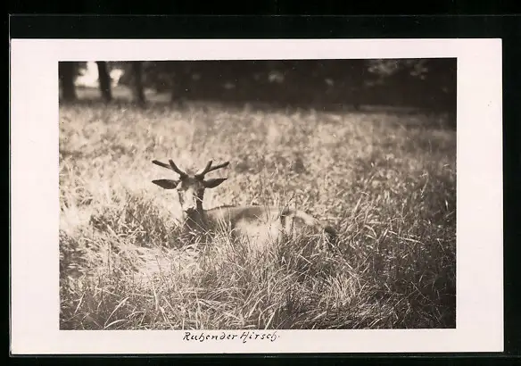 AK Ruhender Hirsch auf einer Wiese