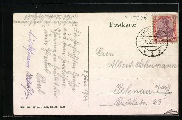 alte Ansichtskarte, gelaufen 1922, Eckknick li. unten, Oberflächenschaden, guter Zustand