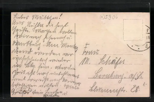alte Ansichtskarte, gelaufen, Briefmarke entfernt, guter Zustand