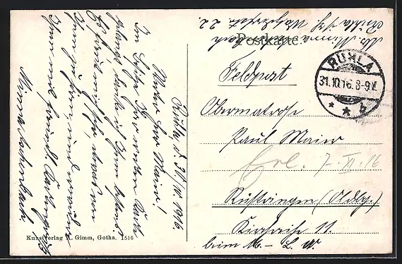 gelaufen 1916, Eckknick li. unten, guter Zustand