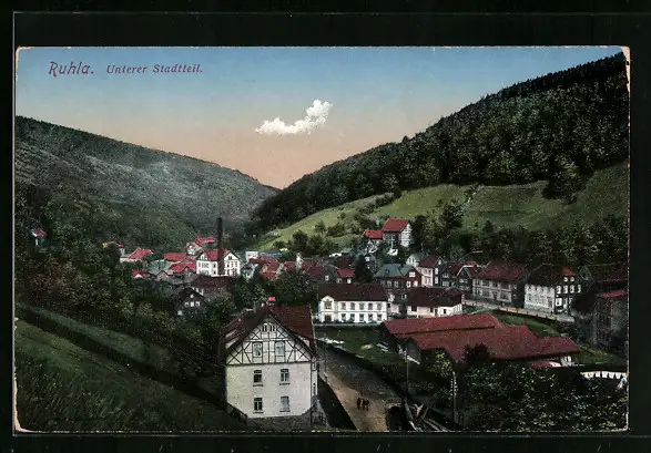 AK Ruhla in Thür., Unterer Stadtteil aus der Vogelschau
