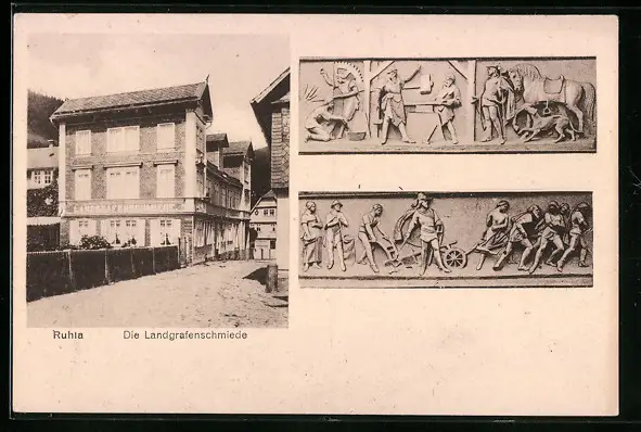 AK Ruhla, vor der Landgrafenschmiede, Wandreliefs