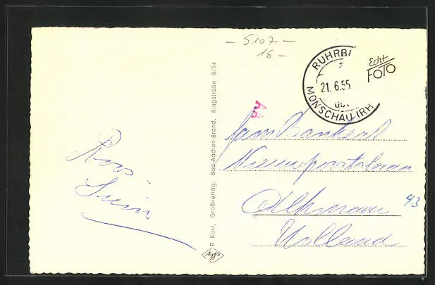 alte Ansichtskarte, gelaufen 1955, Briefmarke entfernt, guter Zustand