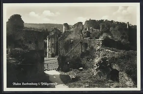 AK Ruine Hardenburg /Pfälzerwald, Ortsansicht aus der Vogelschau