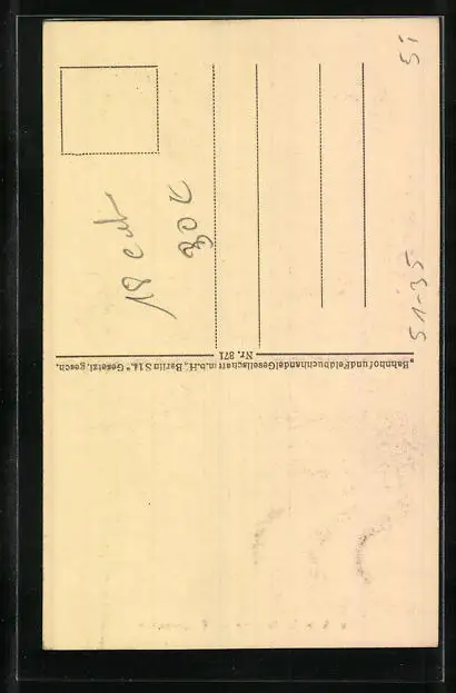 Personenbezogene Daten auf der Rückseite der Karte wurden durch blauen Textmarker unkenntlich gemacht. Die blauen Stellen sind auf die Vorderseite durchgeweicht und wirken sich negativ auf das Postkartenfoto aus