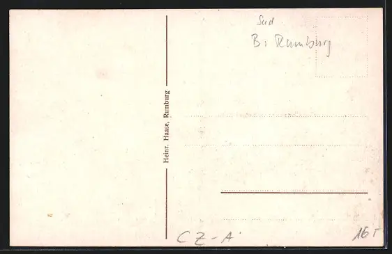 Personenbezogene Daten auf der Rückseite der Karte wurden durch blauen Textmarker unkenntlich gemacht. Die blauen Stellen sind auf die Vorderseite durchgeweicht und wirken sich negativ auf das Postkartenfoto aus