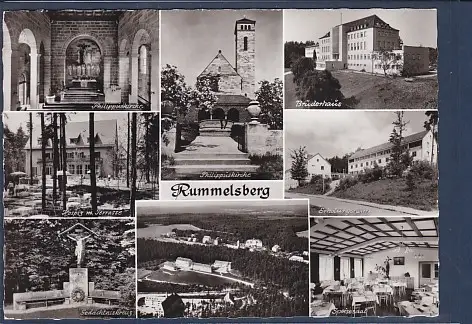 AK Rummelsberg 8.Ansichten Philippuskirche - Bruderhaus - Hospiz m. Terrasse - Philippuskirche - Erholungsheim - Gedächtniskreuz - Speisesaal, nicht gelaufen von ca. 1967, Rückseite Beschriftet.