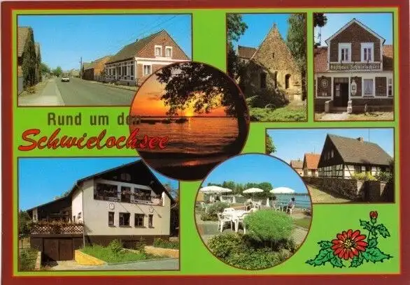 Ansichtskarte Rund um den Schwielochsee 7 Abb., Pieskow, Zaue, Niewitsch, Schwielochsee, Jessern, Goyatz, Speichrow Erhaltung I-II postalisch gelaufen, gestempelt: Stempel unleserlich Druckvermerk: ohne, um 1993 Verlag: Bild und Heimat Reichenbach - 01 05 0790/99