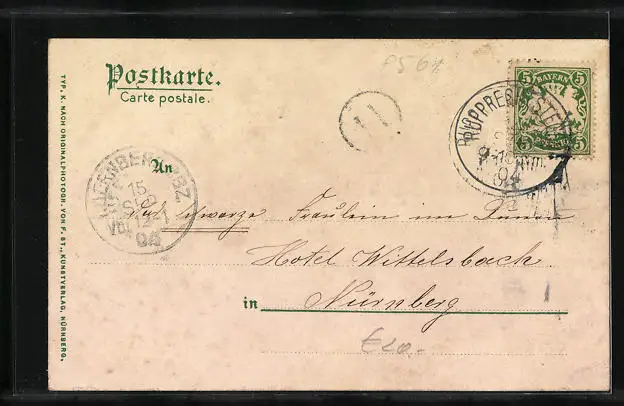 alte Ansichtskarte, gelaufen 1904, guter Zustand