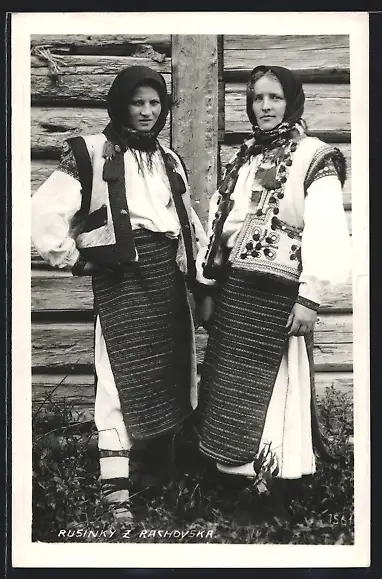 AK Rusinky z Rachovska, zwei Bäuerinnen in Tracht